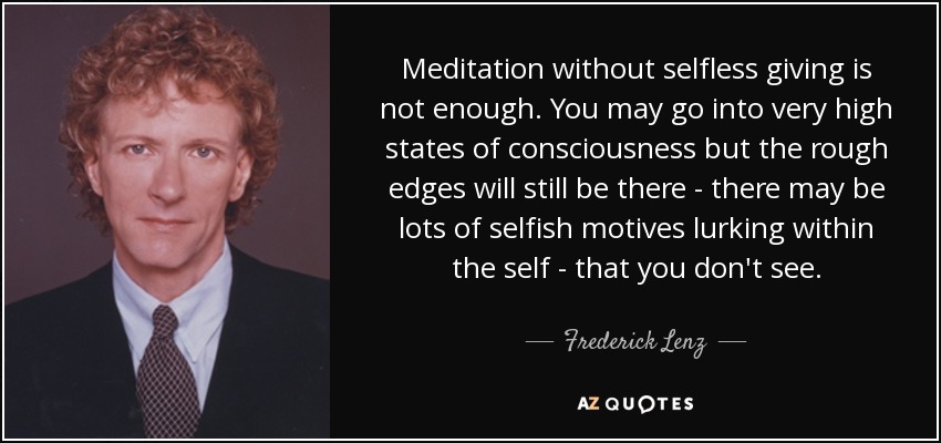 Meditation without selfless giving is not enough. You may go into very high states of consciousness but the rough edges will still be there - there may be lots of selfish motives lurking within the self - that you don't see.