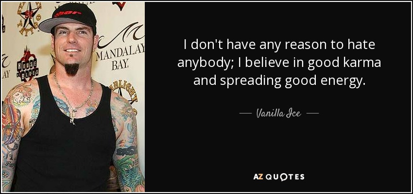 I don't have any reason to hate anybody; I believe in good karma and spreading good energy.