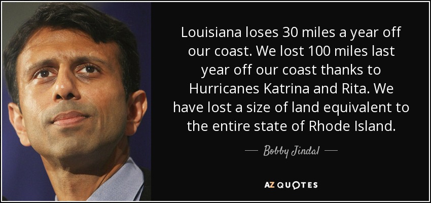 Louisiana loses 30 miles a year off our coast. We lost 100 miles last year off our coast thanks to Hurricanes Katrina and Rita. We have lost a size of land equivalent to the entire state of Rhode Island.