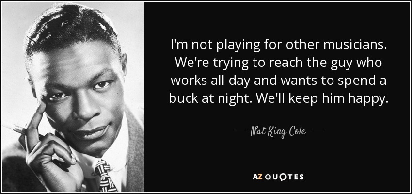 I'm not playing for other musicians. We're trying to reach the guy who works all day and wants to spend a buck at night. We'll keep him happy.