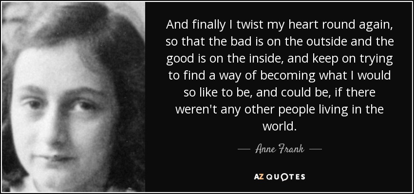 And finally I twist my heart round again, so that the bad is on the outside and the good is on the inside, and keep on trying to find a way of becoming what I would so like to be, and could be, if there weren't any other people living in the world.