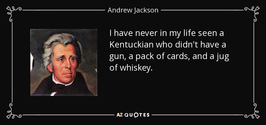 I have never in my life seen a Kentuckian who didn't have a gun, a pack of cards, and a jug of whiskey.