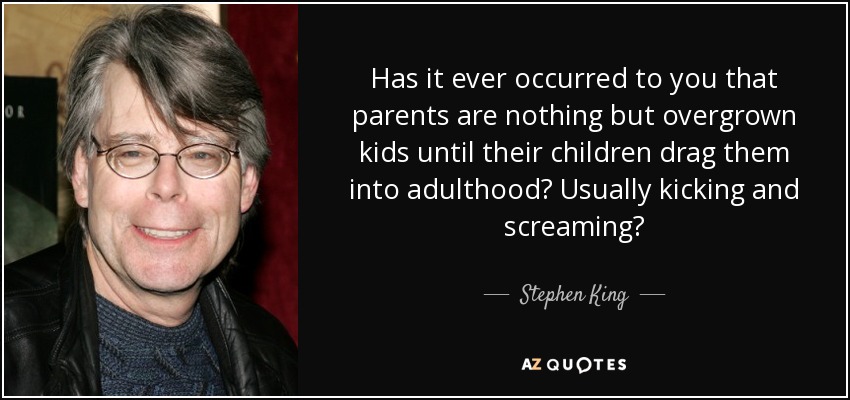 Has it ever occurred to you that parents are nothing but overgrown kids until their children drag them into adulthood? Usually kicking and screaming?