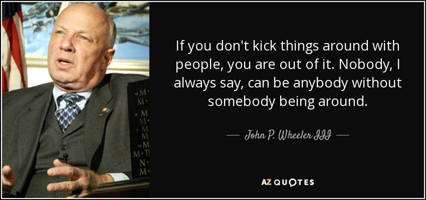 If you don't kick things around with people, you are out of it. Nobody, I always say, can be anybody without somebody being around.