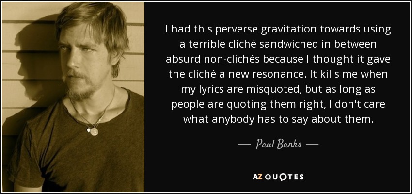 I had this perverse gravitation towards using a terrible cliché sandwiched in between absurd non-clichés because I thought it gave the cliché a new resonance. It kills me when my lyrics are misquoted, but as long as people are quoting them right, I don't care what anybody has to say about them.