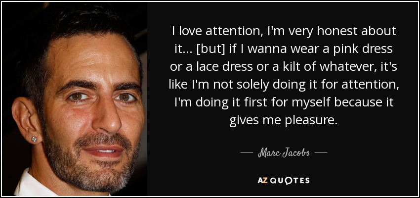 I love attention, I'm very honest about it ... [but] if I wanna wear a pink dress or a lace dress or a kilt of whatever, it's like I'm not solely doing it for attention, I'm doing it first for myself because it gives me pleasure.