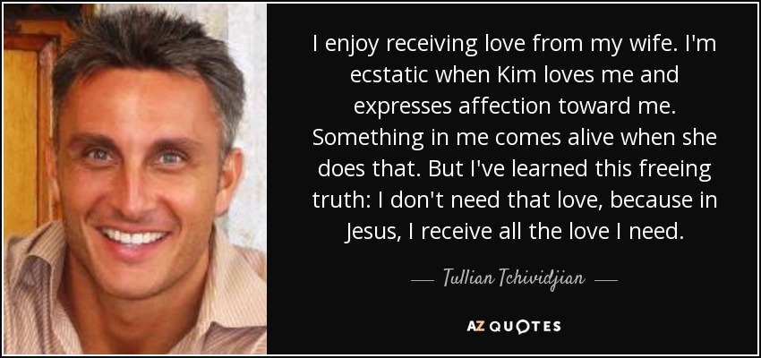 I enjoy receiving love from my wife. I'm ecstatic when Kim loves me and expresses affection toward me. Something in me comes alive when she does that. But I've learned this freeing truth: I don't need that love, because in Jesus, I receive all the love I need.