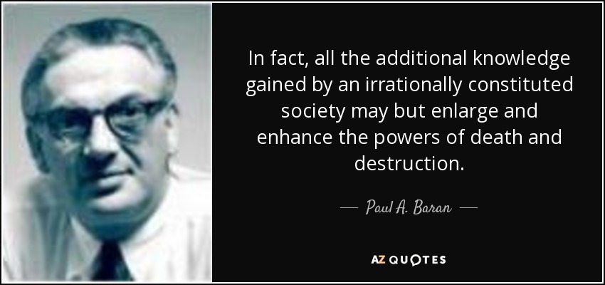 In fact, all the additional knowledge gained by an irrationally constituted society may but enlarge and enhance the powers of death and destruction.