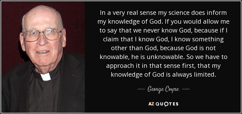 In a very real sense my science does inform my knowledge of God. If you would allow me to say that we never know God, because if I claim that I know God, I know something other than God, because God is not knowable, he is unknowable. So we have to approach it in that sense first, that my knowledge of God is always limited.