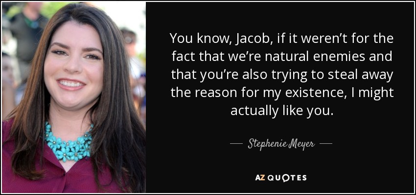 You know, Jacob, if it weren’t for the fact that we’re natural enemies and that you’re also trying to steal away the reason for my existence, I might actually like you.