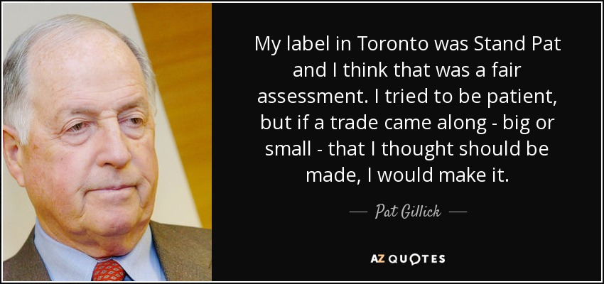 My label in Toronto was Stand Pat and I think that was a fair assessment. I tried to be patient, but if a trade came along - big or small - that I thought should be made, I would make it.