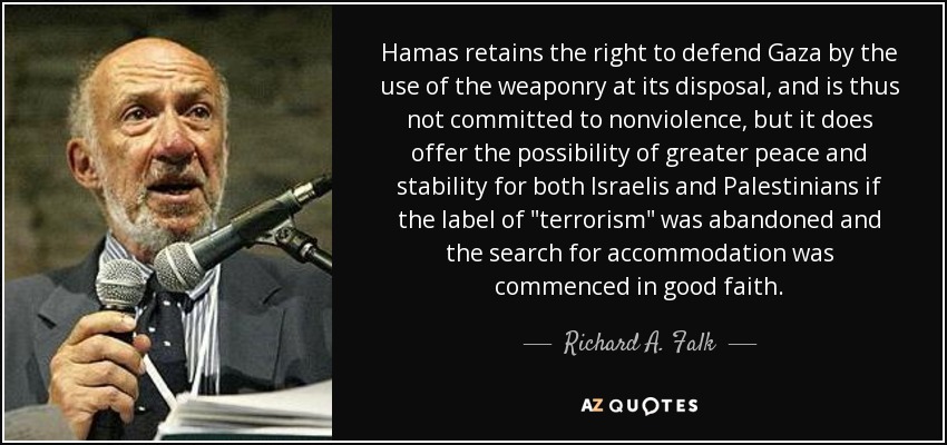 Hamas retains the right to defend Gaza by the use of the weaponry at its disposal, and is thus not committed to nonviolence, but it does offer the possibility of greater peace and stability for both Israelis and Palestinians if the label of "terrorism" was abandoned and the search for accommodation was commenced in good faith.