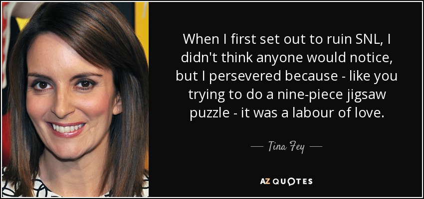 When I first set out to ruin SNL, I didn't think anyone would notice, but I persevered because - like you trying to do a nine-piece jigsaw puzzle - it was a labour of love.
