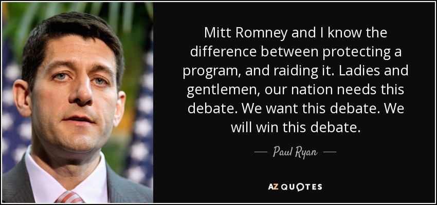 Mitt Romney and I know the difference between protecting a program, and raiding it. Ladies and gentlemen, our nation needs this debate. We want this debate. We will win this debate.