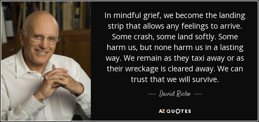 In mindful grief, we become the landing strip that allows any feelings to arrive. Some crash, some land softly. Some harm us, but none harm us in a lasting way. We remain as they taxi away or as their wreckage is cleared away. We can trust that we will survive.