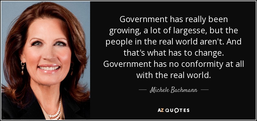 Government has really been growing, a lot of largesse, but the people in the real world aren't. And that's what has to change. Government has no conformity at all with the real world.