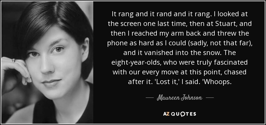 It rang and it rand and it rang. I looked at the screen one last time, then at Stuart, and then I reached my arm back and threw the phone as hard as I could (sadly, not that far), and it vanished into the snow. The eight-year-olds, who were truly fascinated with our every move at this point, chased after it. 'Lost it,' I said. 'Whoops.