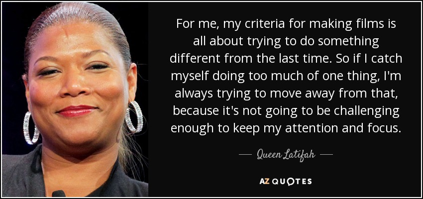 For me, my criteria for making films is all about trying to do something different from the last time. So if I catch myself doing too much of one thing, I'm always trying to move away from that, because it's not going to be challenging enough to keep my attention and focus.