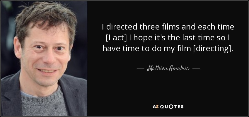 I directed three films and each time [I act] I hope it's the last time so I have time to do my film [directing].