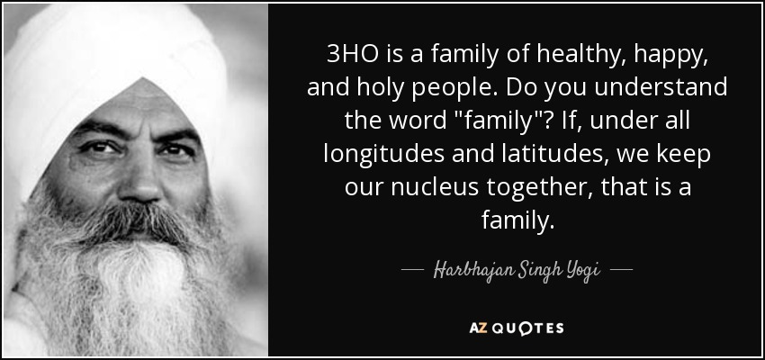 3HO is a family of healthy, happy, and holy people. Do you understand the word "family"? If, under all longitudes and latitudes, we keep our nucleus together, that is a family.