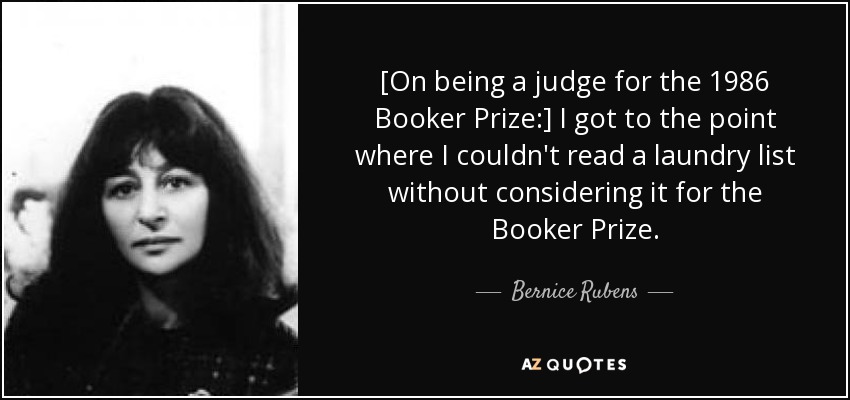 [On being a judge for the 1986 Booker Prize:] I got to the point where I couldn't read a laundry list without considering it for the Booker Prize.