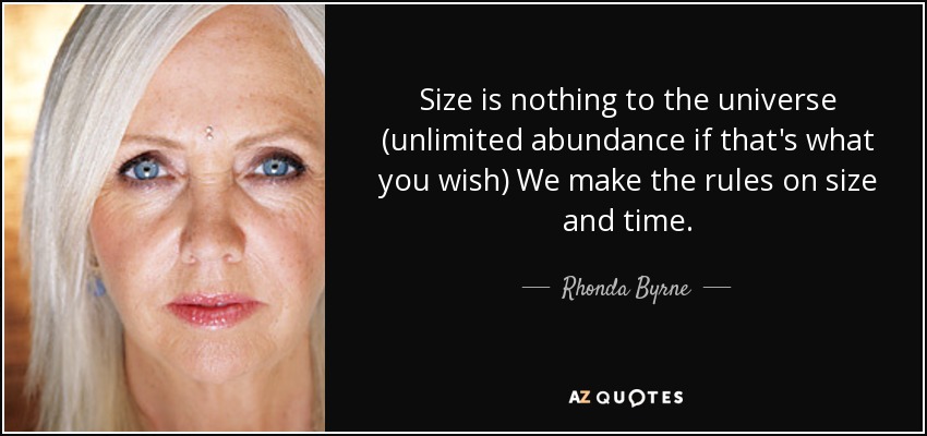 Size is nothing to the universe (unlimited abundance if that's what you wish) We make the rules on size and time.