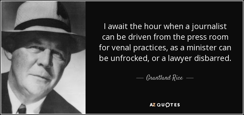 I await the hour when a journalist can be driven from the press room for venal practices, as a minister can be unfrocked, or a lawyer disbarred.