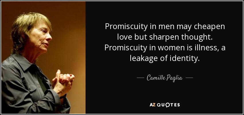 Promiscuity in men may cheapen love but sharpen thought. Promiscuity in women is illness, a leakage of identity.