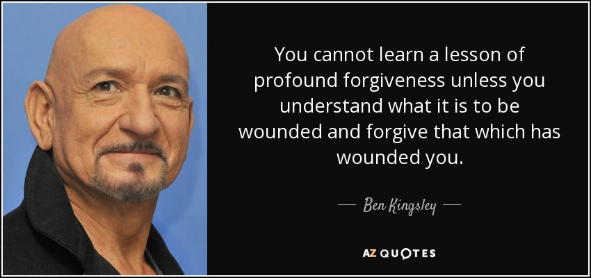 You cannot learn a lesson of profound forgiveness unless you understand what it is to be wounded and forgive that which has wounded you.