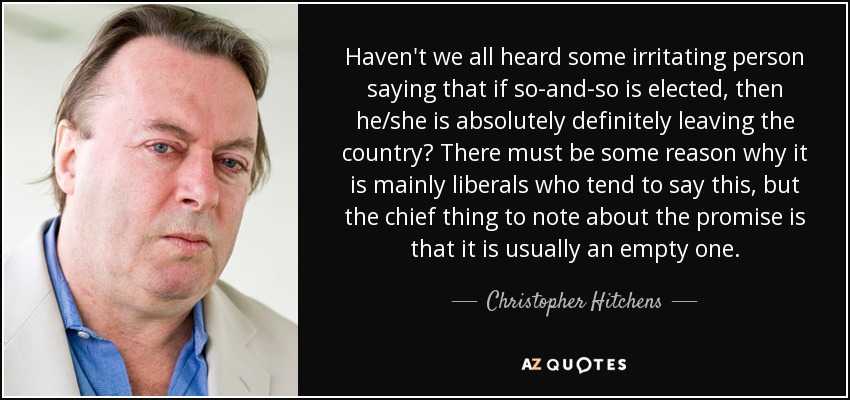 Haven't we all heard some irritating person saying that if so-and-so is elected, then he/she is absolutely definitely leaving the country? There must be some reason why it is mainly liberals who tend to say this, but the chief thing to note about the promise is that it is usually an empty one.