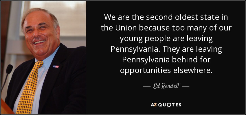 We are the second oldest state in the Union because too many of our young people are leaving Pennsylvania. They are leaving Pennsylvania behind for opportunities elsewhere.