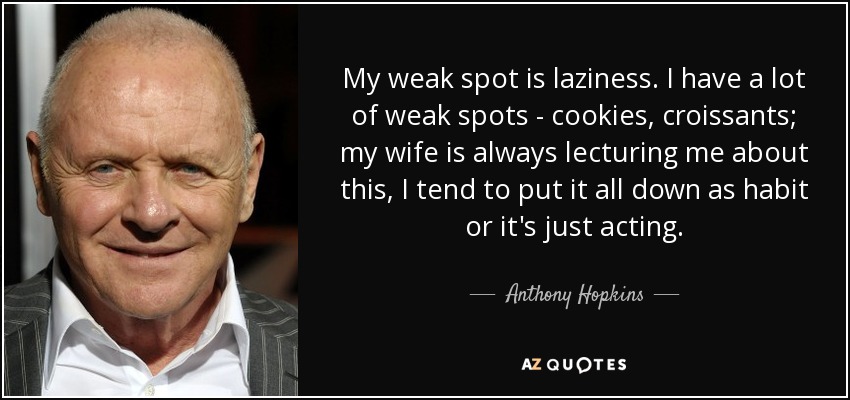My weak spot is laziness. I have a lot of weak spots - cookies, croissants; my wife is always lecturing me about this, I tend to put it all down as habit or it's just acting.