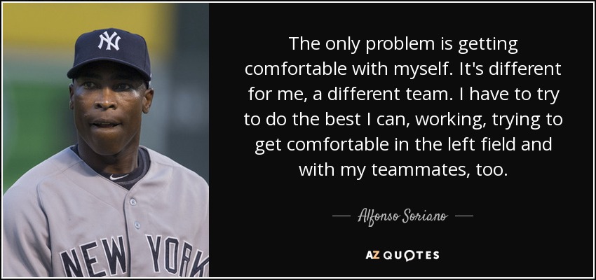The only problem is getting comfortable with myself. It's different for me, a different team. I have to try to do the best I can, working, trying to get comfortable in the left field and with my teammates, too.