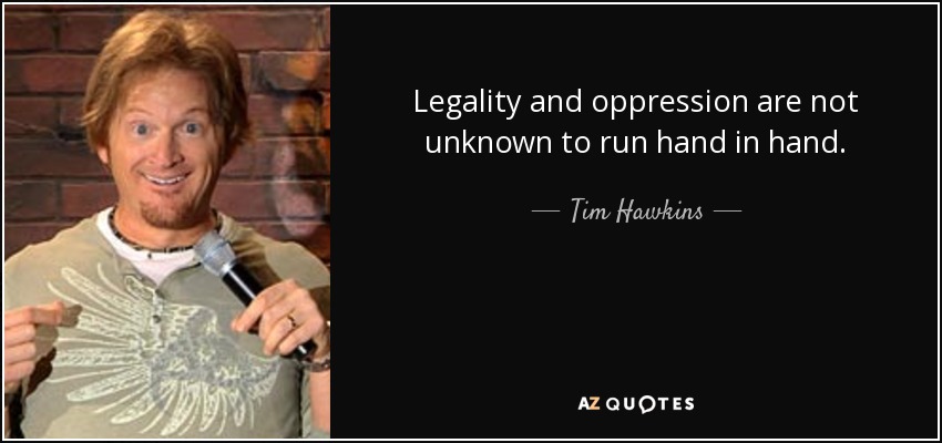 Ultimately, if people lose their willingness to recognize that there are times in our history when legality becomes distinct from morality, we aren't just ceding control of our rights to the government, but our futures.