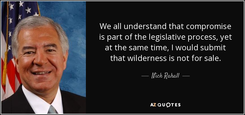 We all understand that compromise is part of the legislative process, yet at the same time, I would submit that wilderness is not for sale.