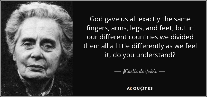 God gave us all exactly the same fingers, arms, legs, and feet, but in our different countries we divided them all a little differently as we feel it, do you understand?