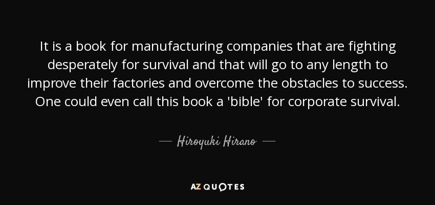 It is a book for manufacturing companies that are fighting desperately for survival and that will go to any length to improve their factories and overcome the obstacles to success. One could even call this book a 'bible' for corporate survival.