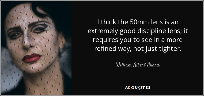 I think the 50mm lens is an extremely good discipline lens; it requires you to see in a more refined way, not just tighter.