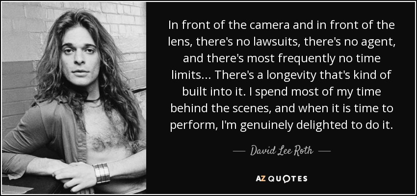 In front of the camera and in front of the lens, there's no lawsuits, there's no agent, and there's most frequently no time limits... There's a longevity that's kind of built into it. I spend most of my time behind the scenes, and when it is time to perform, I'm genuinely delighted to do it.