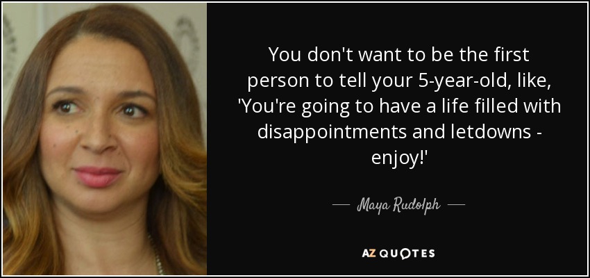 You don't want to be the first person to tell your 5-year-old, like, 'You're going to have a life filled with disappointments and letdowns - enjoy!'