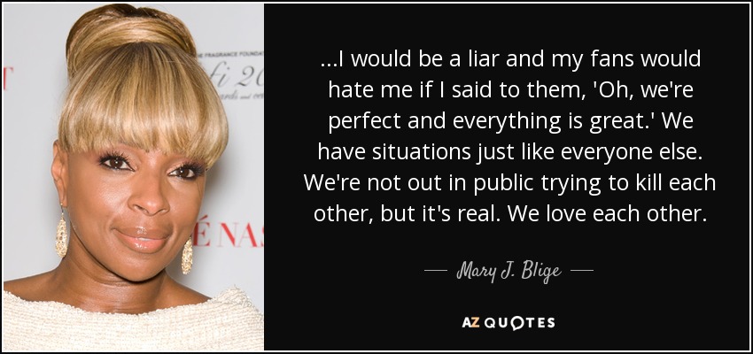 ...I would be a liar and my fans would hate me if I said to them, 'Oh, we're perfect and everything is great.' We have situations just like everyone else. We're not out in public trying to kill each other, but it's real. We love each other.