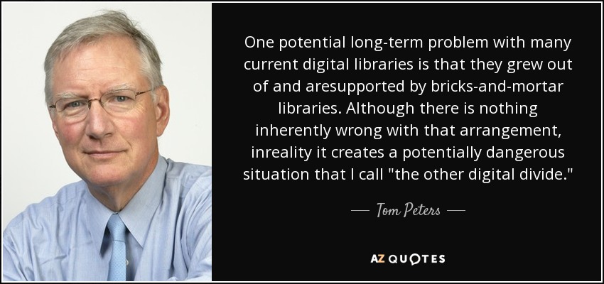 One potential long-term problem with many current digital libraries is that they grew out of and aresupported by bricks-and-mortar libraries. Although there is nothing inherently wrong with that arrangement, inreality it creates a potentially dangerous situation that I call "the other digital divide."