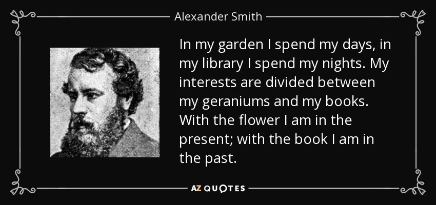 In my garden I spend my days, in my library I spend my nights. My interests are divided between my geraniums and my books. With the flower I am in the present; with the book I am in the past.
