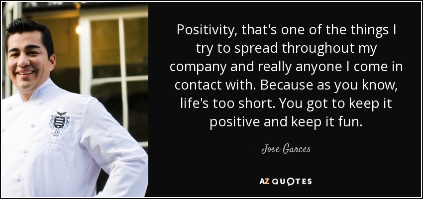 Positivity, that's one of the things I try to spread throughout my company and really anyone I come in contact with. Because as you know, life's too short. You got to keep it positive and keep it fun.