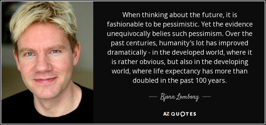 When thinking about the future, it is fashionable to be pessimistic. Yet the evidence unequivocally belies such pessimism. Over the past centuries, humanity's lot has improved dramatically - in the developed world, where it is rather obvious, but also in the developing world, where life expectancy has more than doubled in the past 100 years.
