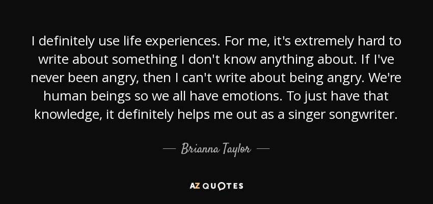I definitely use life experiences. For me, it's extremely hard to write about something I don't know anything about. If I've never been angry, then I can't write about being angry. We're human beings so we all have emotions. To just have that knowledge, it definitely helps me out as a singer songwriter.