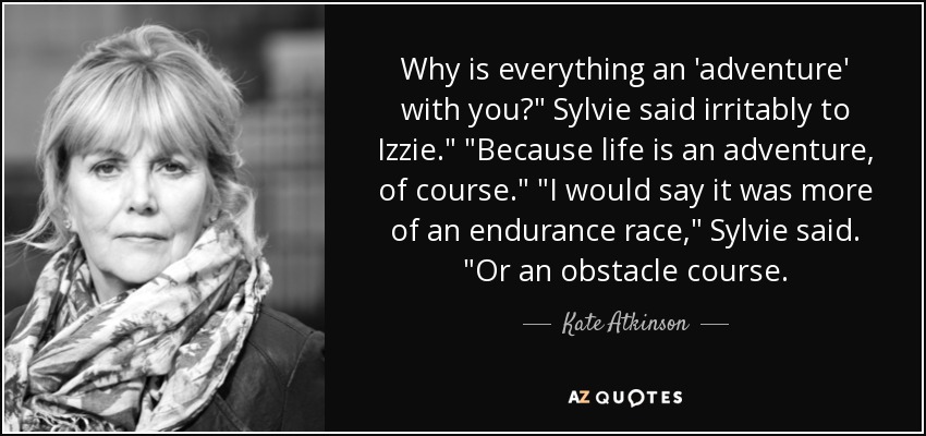 Why is everything an 'adventure' with you?" Sylvie said irritably to Izzie." "Because life is an adventure, of course." "I would say it was more of an endurance race," Sylvie said. "Or an obstacle course.