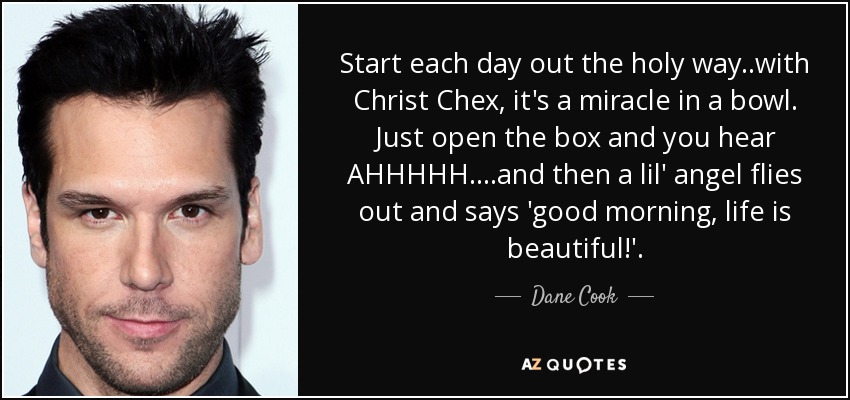 Start each day out the holy way..with Christ Chex, it's a miracle in a bowl. Just open the box and you hear AHHHHH....and then a lil' angel flies out and says 'good morning, life is beautiful!'.