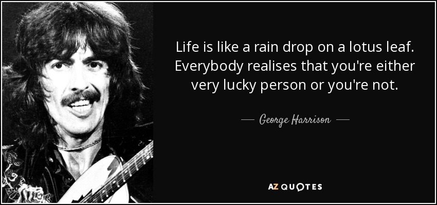 Life is like a rain drop on a lotus leaf. Everybody realises that you're either very lucky person or you're not.