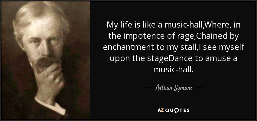 My life is like a music-hall,Where, in the impotence of rage,Chained by enchantment to my stall,I see myself upon the stageDance to amuse a music-hall.